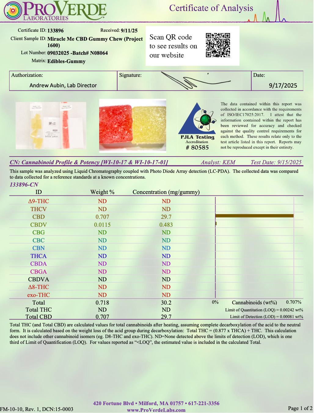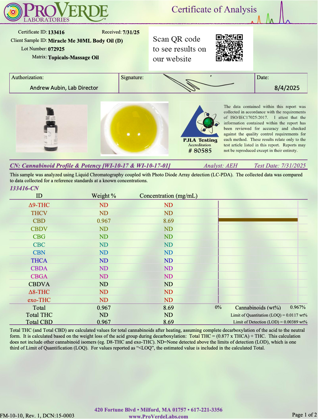 Miracle Me CBD Premier Oil Tincture purchased after October 2025: