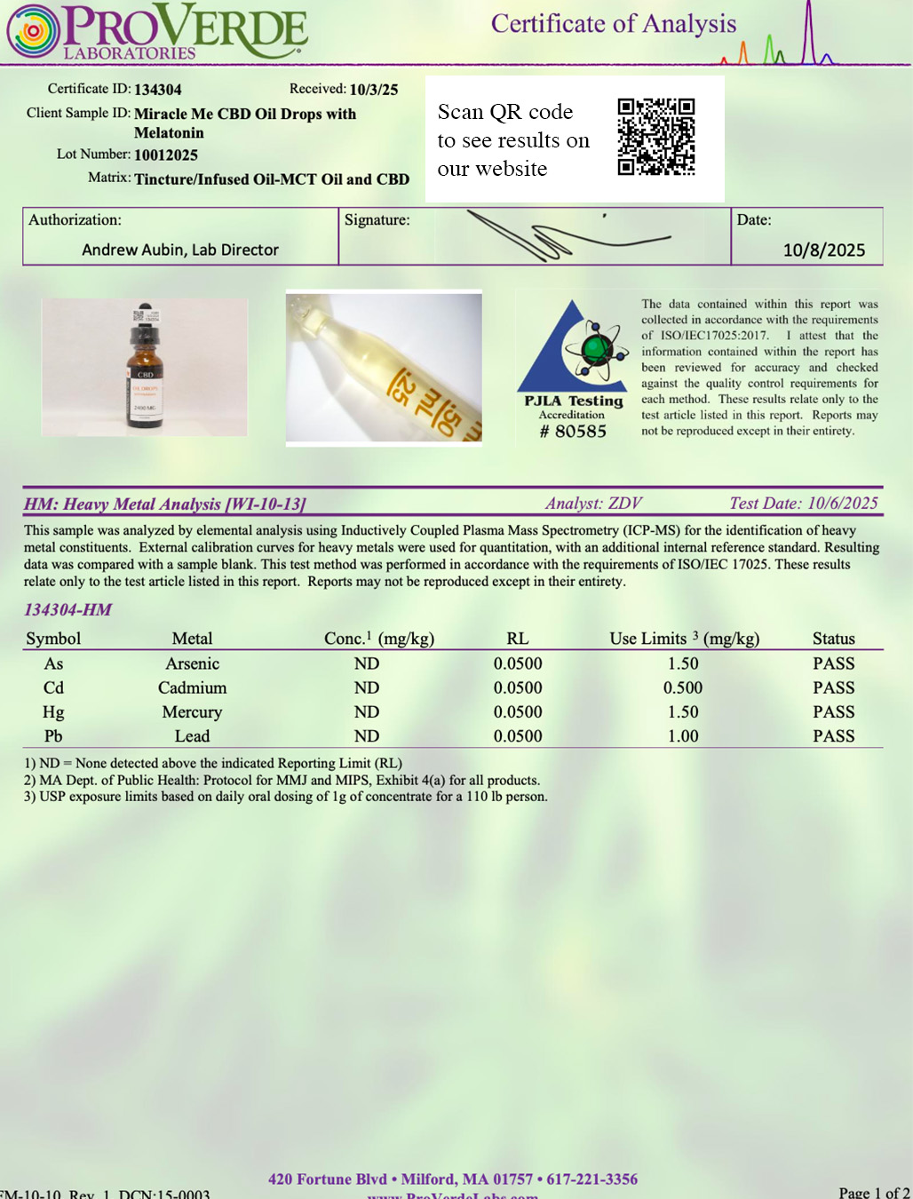 Miracle Me CBD Oil Drops with Melatonin purchased after October 2025: