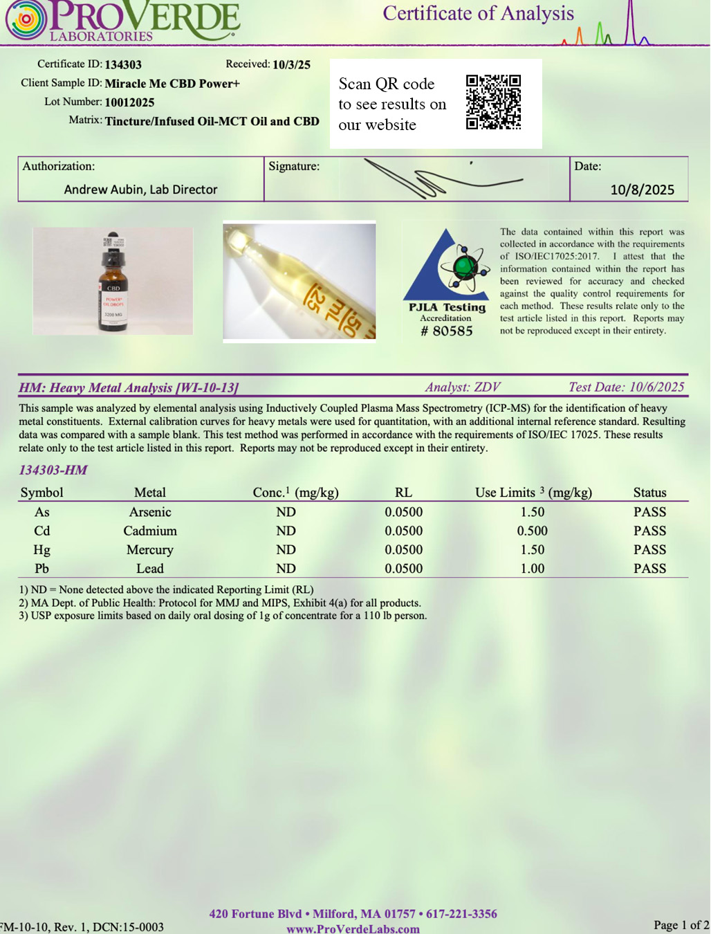 Miracle Me CBD Power+ Oil Tincture purchased after October 2025: